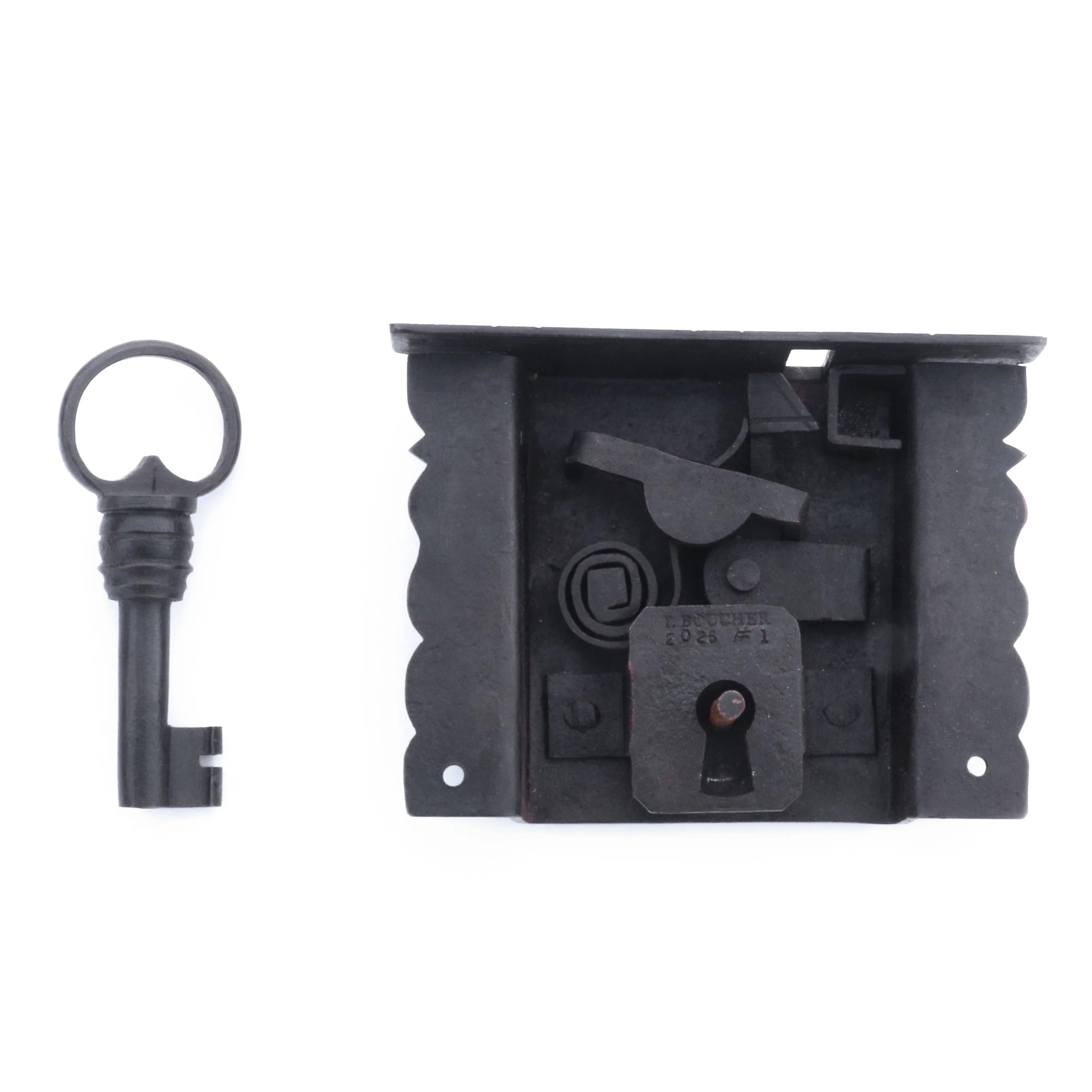 This particular trunk was missing its lock, but had signs of a secondary lock (also removed) having been installed at some point. The decision was made to make a lock that likely would be similar to its original, complimenting the chest as well as allow for the lid to be latched for carrying with the top handle.